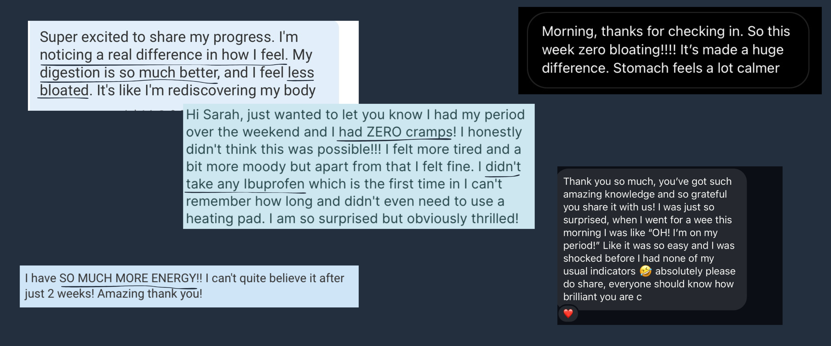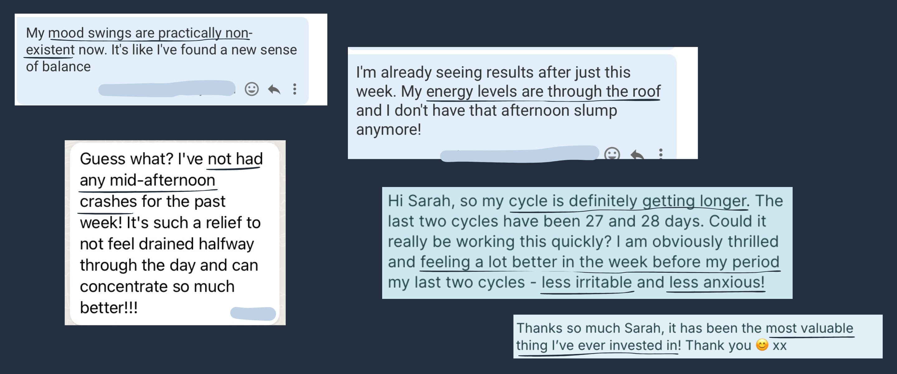 Symptoms I'll be covering: acne, breast tenderness, cravings, cycles <25 & >35 days, heavy periods, headaches/migraines, low progesterone, painful periods, PMS bloating, PMS fatigue, PMS mood swings and spotting.